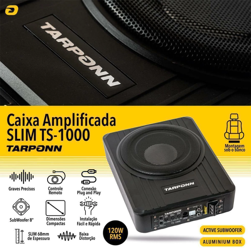 Pensada para você que busca uma performance excepcional de som automotivo, a Caixa Amplificada Slim Tarponn TS-1000 proporciona graves profundos e de qualidade com um amplificador potente de 120W RMS.